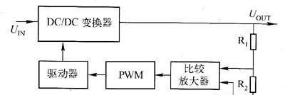 其中DC/DC變換器用以進(jìn)行功率轉(zhuǎn)換,它是電源適配器的核心部分,此外還有啟動(dòng)、過流與過壓保護(hù)、噪聲濾波等電路?輸出采樣電路(R1?R2)檢測輸出電壓變化,并與基準(zhǔn)電壓U,比較誤差電壓經(jīng)過放大及脈寬調(diào)制(PWM)電路,再經(jīng)過驅(qū)動(dòng)電路控制功率器件的占空比,從而達(dá)到調(diào)整輸出電壓大小的目的。